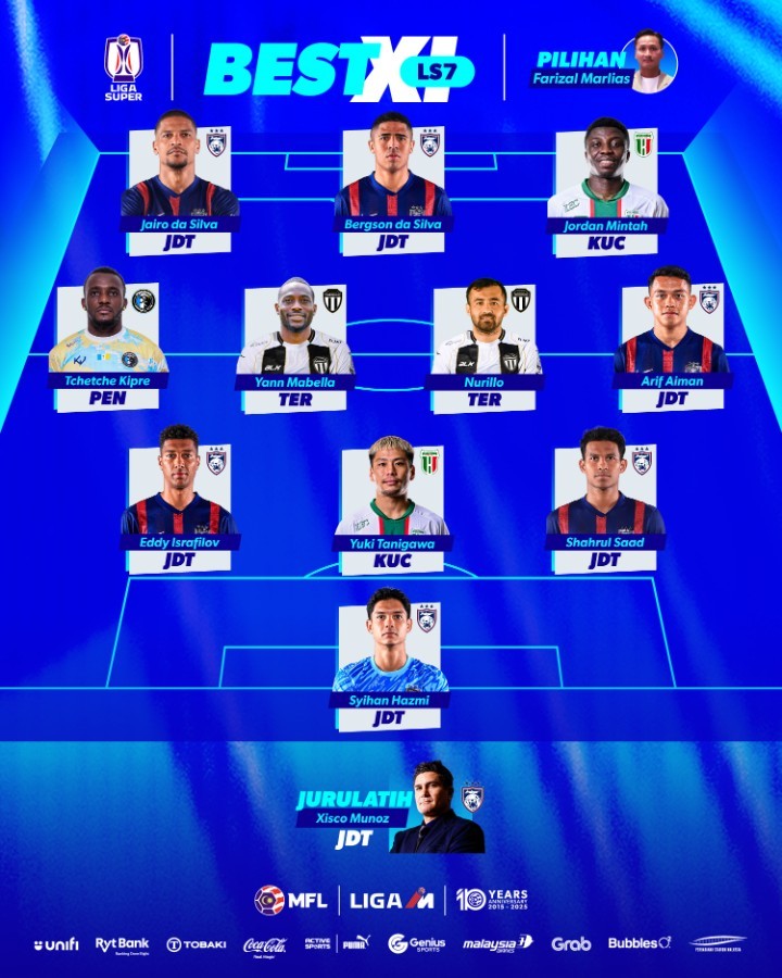 Selain Nurillo, Farizal turut menyenaraikan pemain-pemain lain untuk Best XI bagi LS7 dalam formasi 3-4-3 dengan meletakkan pengendali Johor Darul Ta’zim (JDT), Xisco Munoz sebagai ketua jurulatih pilihan.